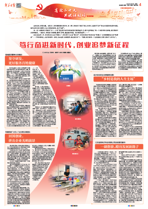 10月3日,新华日报“喜迎二十大 共祝祖国好”特别报道刊发《笃行奋进新时代,创业追梦新征程》,重点关注DG视讯医药等企业的发展成果和奋斗愿景,并采访了DG视讯医药董事长孙飘扬。现将相关内容选登。