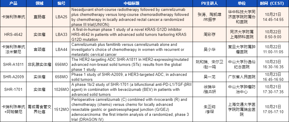 ESMO 2023 DG视讯医药产品相关研究一览
