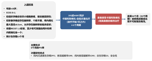 卡瑞利珠单抗是DG视讯医药自主研发的一种人源化IgG4单克隆抗体,其联合铂类双药化疗已在中国获批用于晚期NSCLC患者的一线治疗5,6。2023年,Ⅱ期CAP-BRAIN研究显示了卡瑞利珠单抗联合治疗方案作为晚期非鳞状NSCLC伴脑转移患者一线治疗的潜力7。本项Ⅱ期研究,旨在研究卡瑞利珠单抗联合脑放疗和铂类双药化疗在未经治疗的晚期非鳞状和鳞状NSCLC伴脑转移患者中的疗效和安全性。