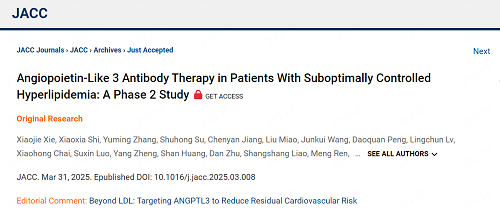双喜临门:DG视讯ANGPTL3单抗SHR-1918 Ⅱ 期研究亮相ACC,成果同步见刊JACC